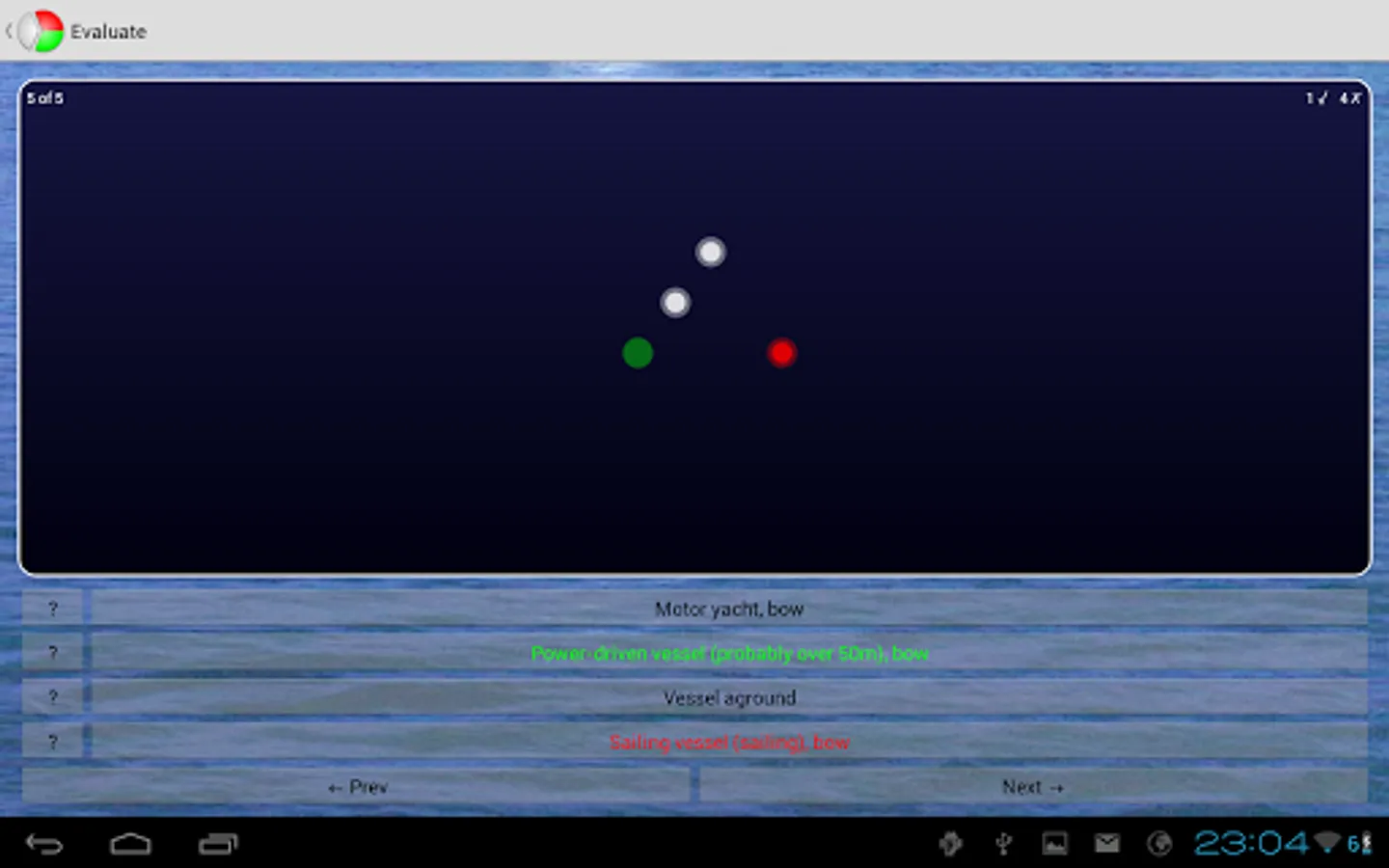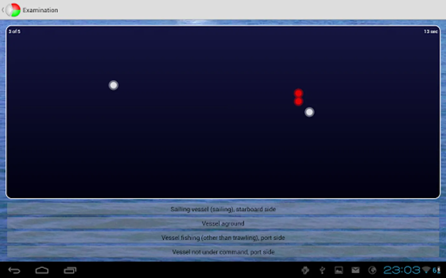 This app helps you to learn the vessel lights as prescribed by the International Regulations for Preventing Collisions at Sea (ColReg).