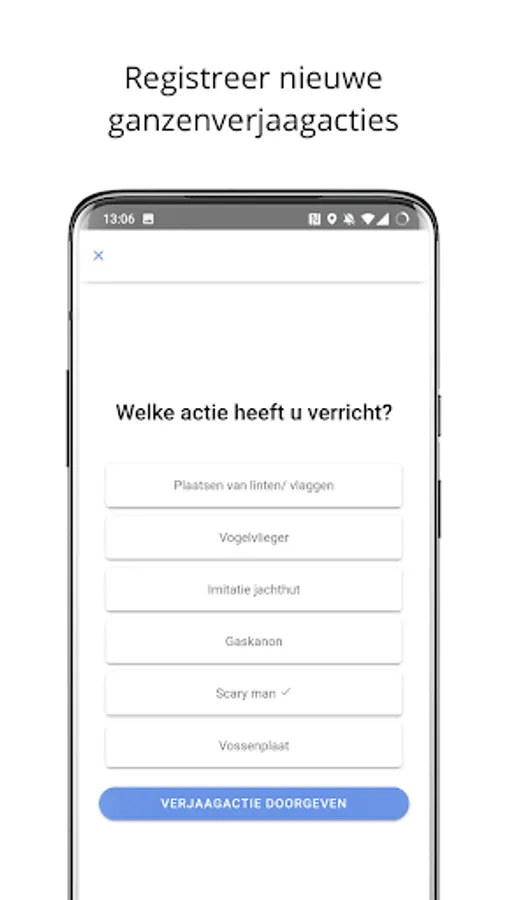 ANRA, or Anser Rapport, is an app from the Faunabeheereinheid Utrecht. The app can be used to register geese chasing campaigns within Eemland. The purpose of the app is to gain insight into the effectiveness of geese deterrents.