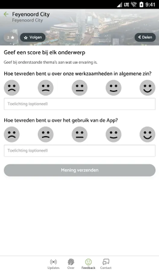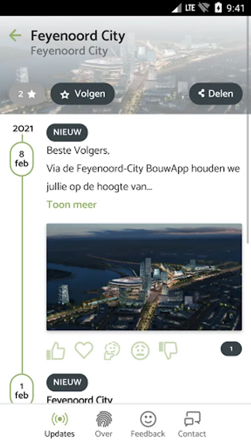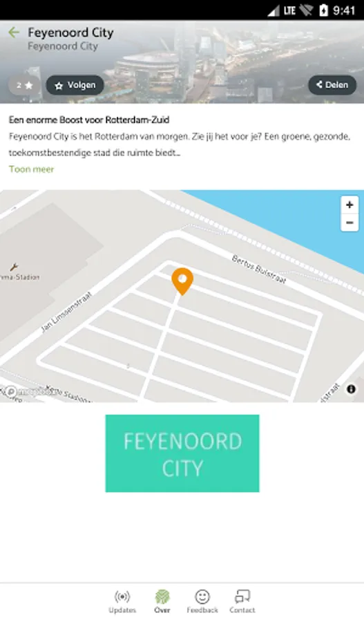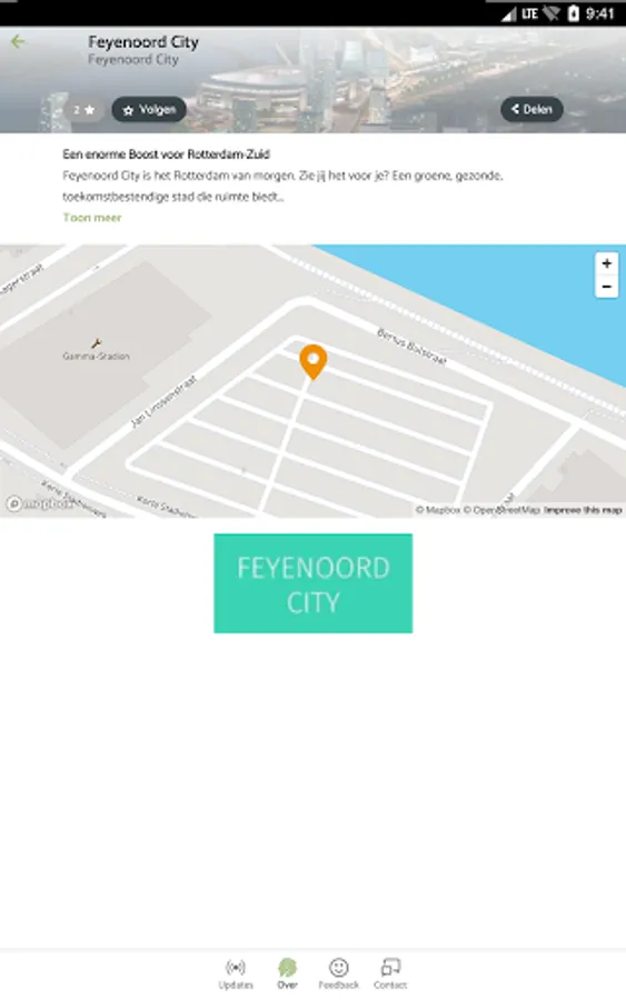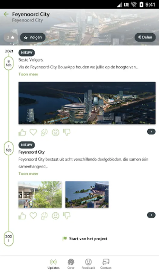 The FeyenoordCity BouwApp informs you about the construction projects of Feyenoord City. For each construction project, as local residents, you will find information about upcoming nuisance and highlights, contact details of the relevant environmental manager and you can read updates about construction projects in your area.