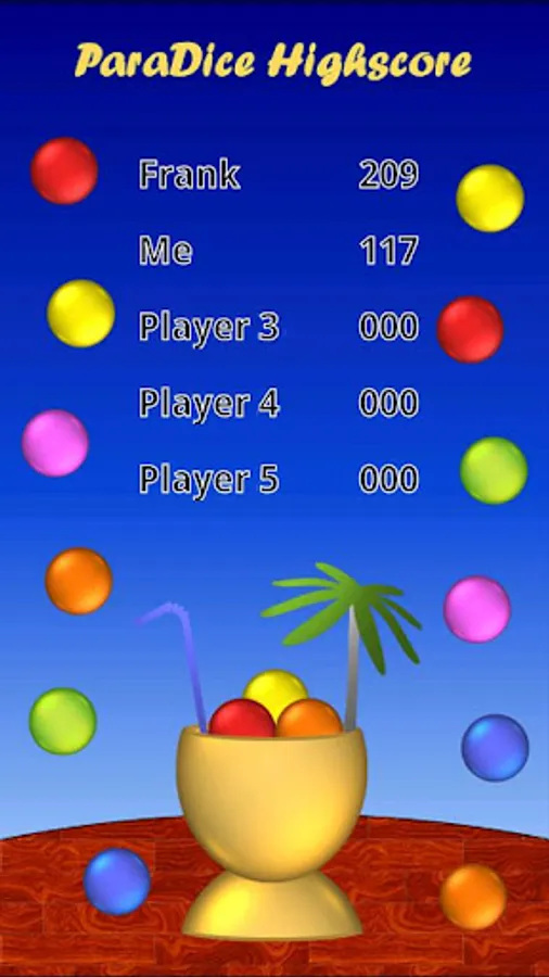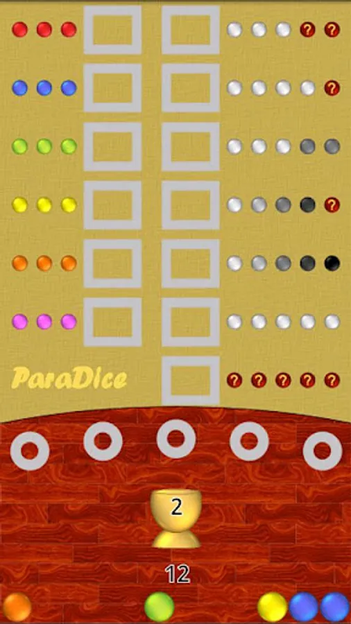 A game similar to Yahtzee™ (Yahtzy, Yatzi, Yatzy, Yacht, Würfel), but with colored balls instead of dice.