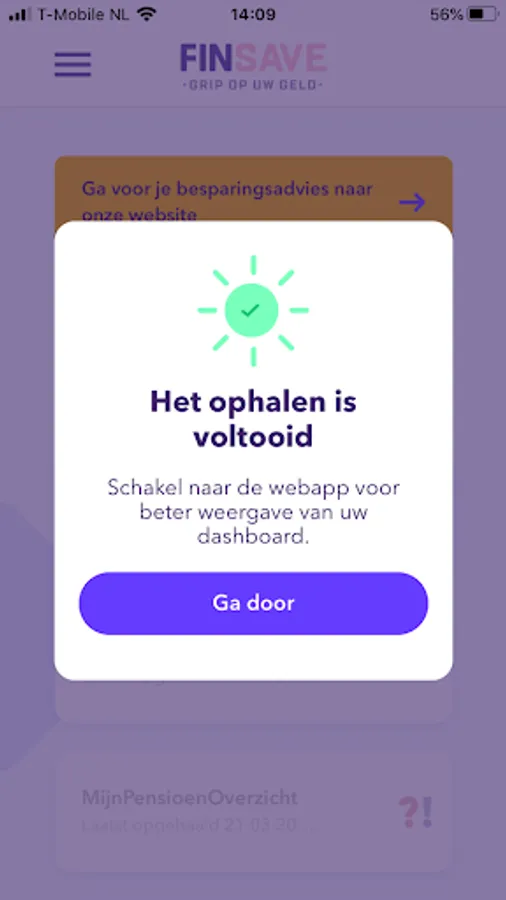 With this app you and your possible partner can create a personal account at FinSave. Then you can use this app in an easy and safe way to share data with your personal advisor.