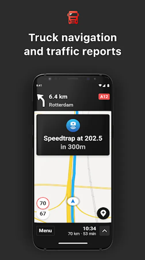 Truckmeister is the #1 app for truck drivers. Truckmeister makes driving a truck safer by warning you for accidents, stationary vehicles, traffic jams, speedtraps, road works and more. FLUX shows the actual maximum speed and has real-time traffic light info so you know when you are able to start driving again.