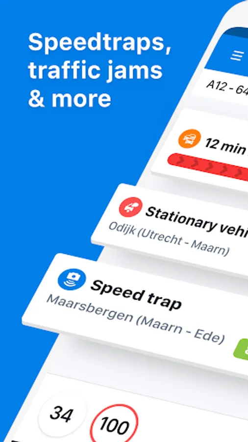 • Overlay: the app offers an overlay, allowing you to run Flitsmeister in the background without losing sight of the current and maximum speed as well as alerts.