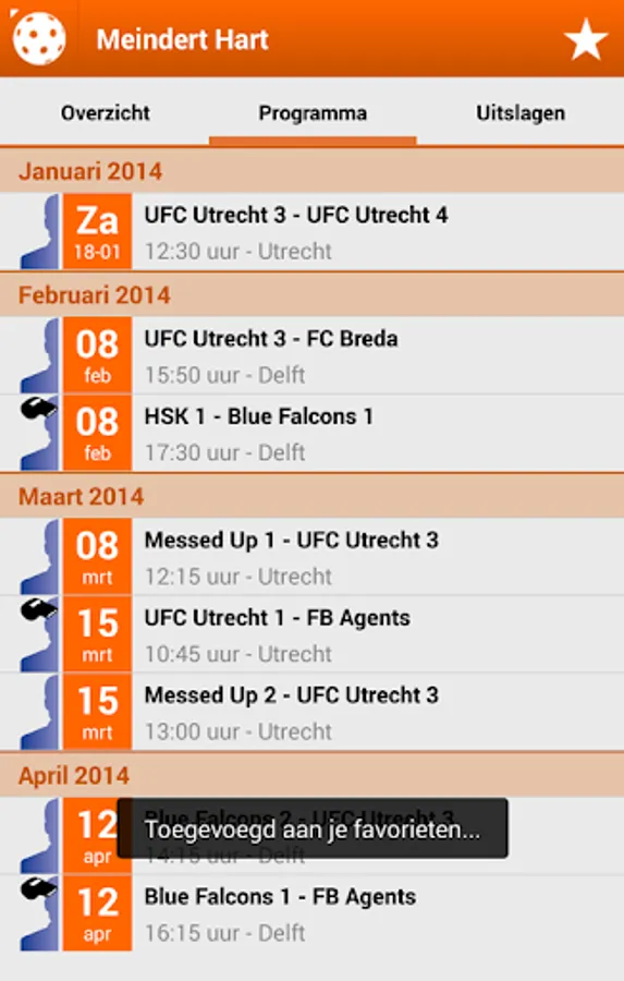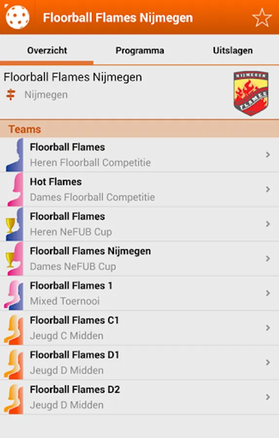You're playing in the Dutch floorball competition, but you're having trouble finding the information about when and where you're scheduled to play the next floorball matches? You like to have insight in the full floorball calendar of all teams you're member of? You want to know instantly when a matches final score has been submitted? And when your team needs to deliver referees for another game you want to know when it's scheduled and what kind of game you're facing?