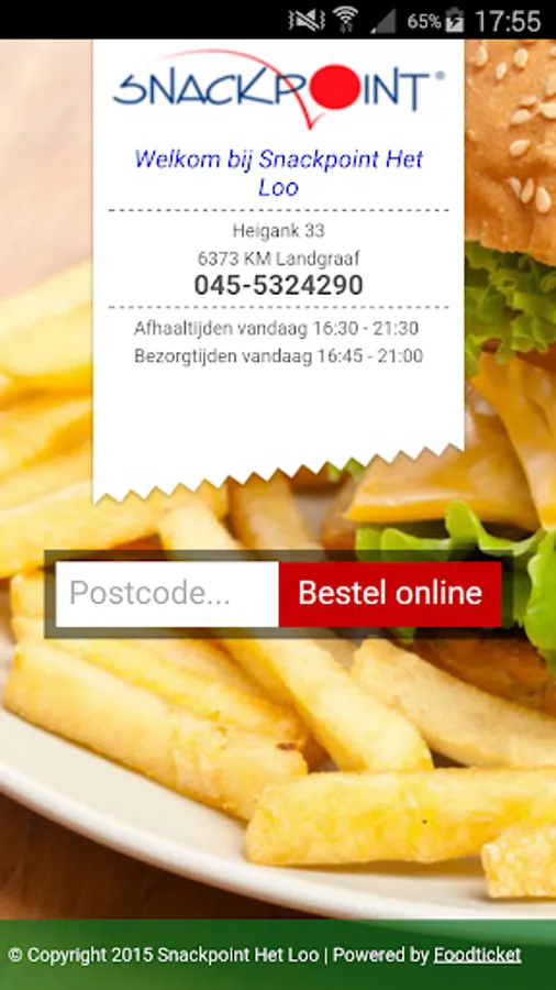 The Snackpoint the loo app you order safe and fast delicious fries and snacks from Landgraaf area. Direct online payment through your own bank with IDEAL!