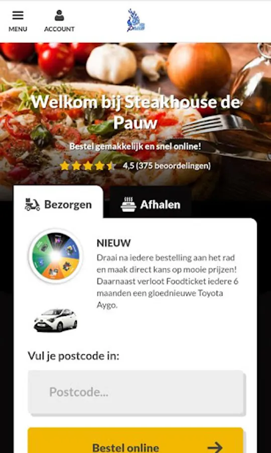 The Steakhouse Peacock app you order safely and quickly mix the tastiest dishes, steaks, ribs and more from Breda and its surroundings. Online payment through your own bank with iDeal!