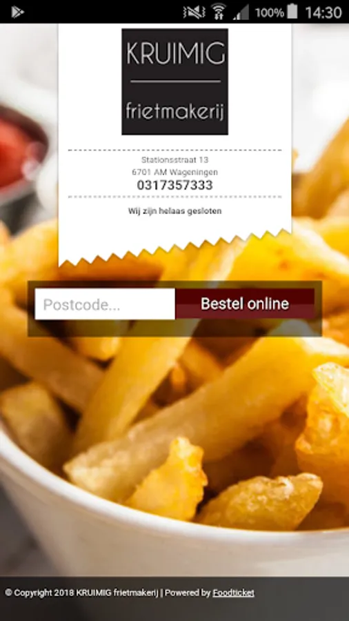 The floury frietmakerij app you order safe and fast delicious fries and more of Wageningen and surroundings. Online payment through your own bank with iDeal!