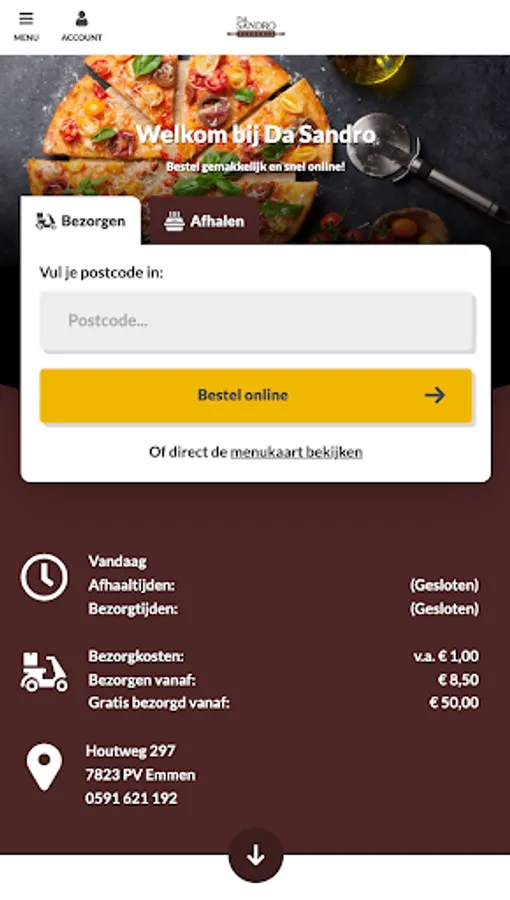 With the Pizzeria Da Sandro app you order safely and quickly the tastiest pizza, sandwich and more of Emmen and surroundings. Pay direct online via your own bank with iDEAL!