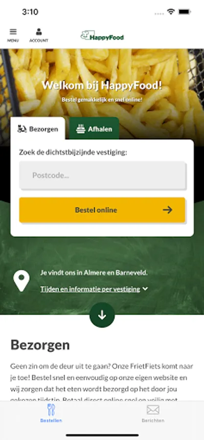 Met de HappyFood app bestel je veilig en snel de lekkerste patat, broodjes, snacks en meer van Almere, Barneveld en omstreken. Direct online betalen via je eigen bank met iDEAL!