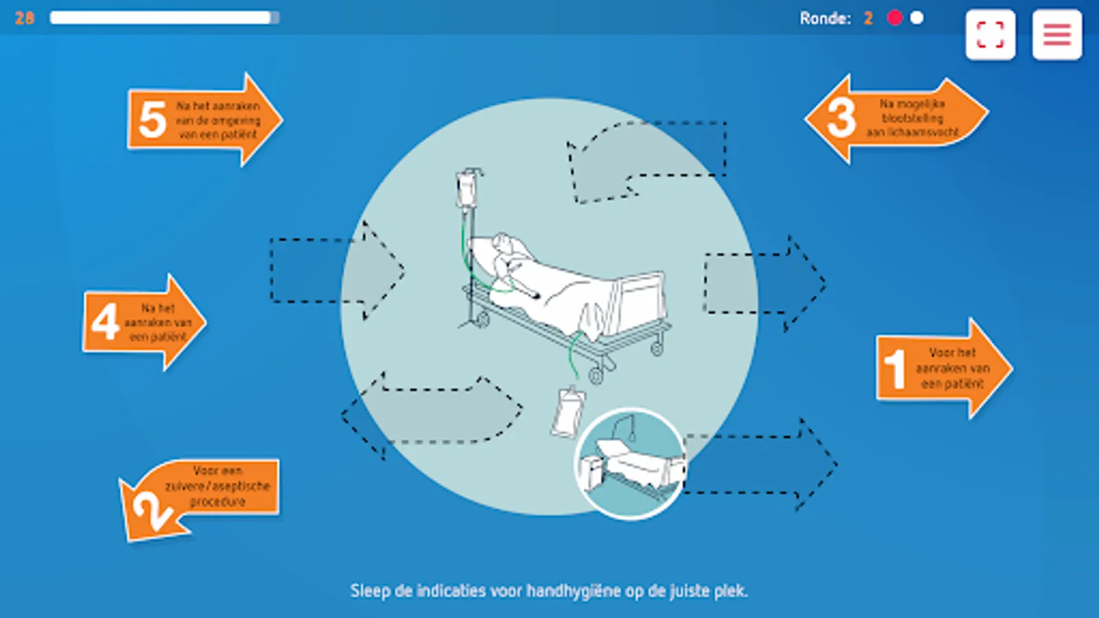 Test and discover your basic knowledge of hand hygiene, personal hygiene and isolation measures that apply within the hospital with this serious game. Through a series of short and challenging games you can expand and optimize your knowledge of infection prevention. Play individually or invite other fellow players to a knowledge challenge.