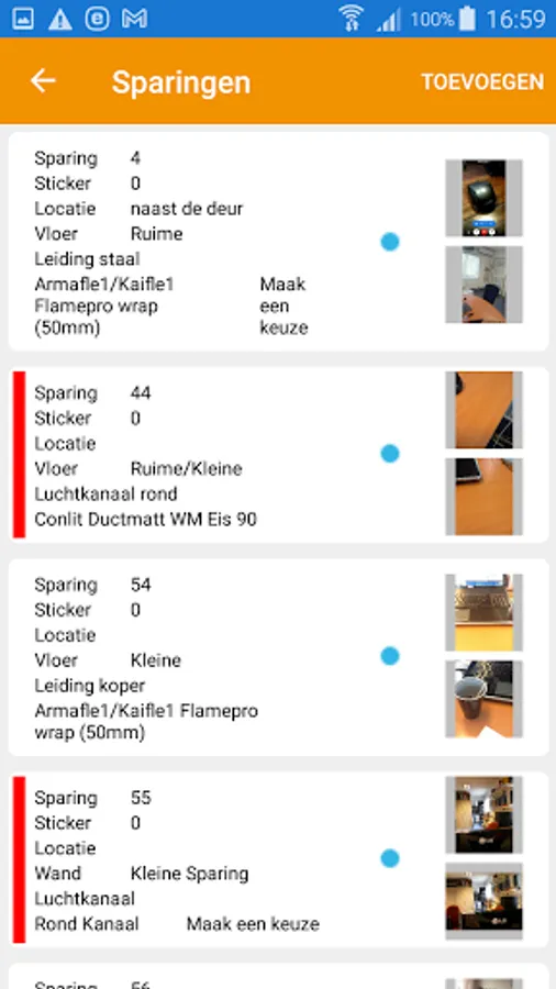 Assist in the registration of conduits and openings in walls and floors are fire resistant insulated. This app includes the guidance laid out what material per pass, the diameter, the type of recess and with what material throughput fireproofed. In addition, can be recorded per pass two pictures, one before and and after isolation. If there is a floor plan is available can as the location of the bushing are indicated.