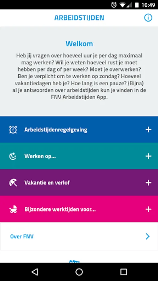 The app was developed by Fresh Media commissioned by the FNV. We have tried to be as accessible as possible to translate our knowledge of current laws to useful texts.