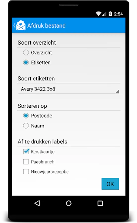 This app lets you register addresses. You can view an address on a map and you can define keywords to classify addresse. You can print an overview of addresses to a pdf file, as a list or on label sheets.