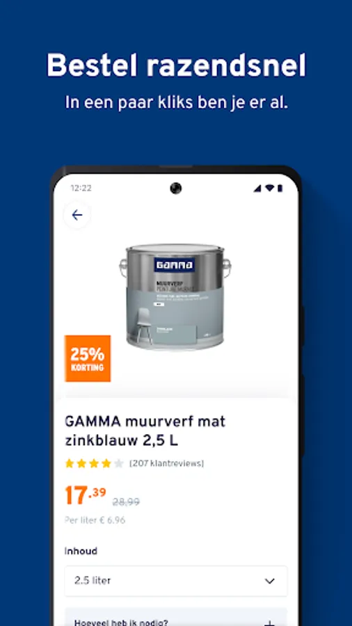 Discover the shopping convenience of our app. Order your favorite DIY products and have them delivered to your home or the hardware store. You can also opt for Click & Collect: you order online and pick up the product at a GAMMA hardware store nearby.