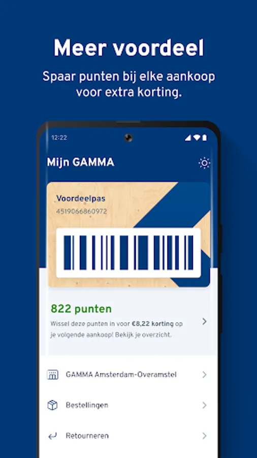 In the GAMMA app you always have your discount pass at hand. With the GAMMA Discount Card you save for a discount on your next job. Use the barcode of the Voordeelpas in the app or link your physical customer card to the app. This way you stay well informed of your number of advantage points.