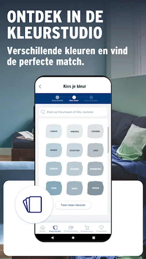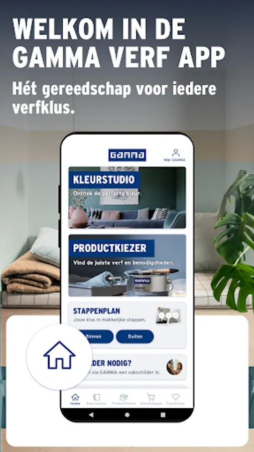 Want to order a brush quickly? Looking for which color suits your interior? With the app we help you search and find the right color and supplies for every paint job. With the GAMMA Paint app your painting job becomes even easier. Discover and try out colors digitally on your own wall, easily find the right products and get handy help with every step of the painting job. With the app you can also easily order testers, mixing paint or even a professional painter. Everything for a sleek painting result.
