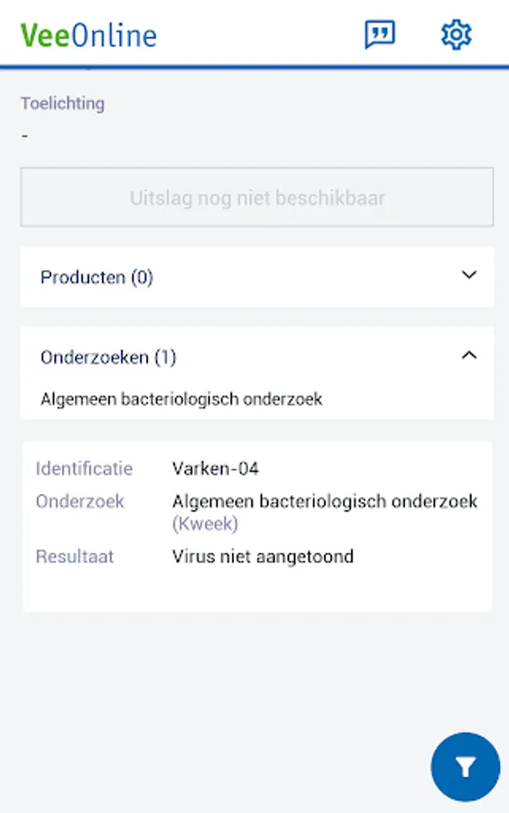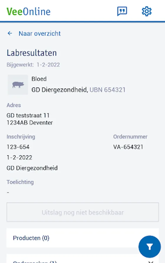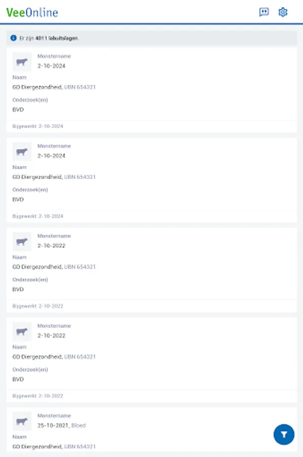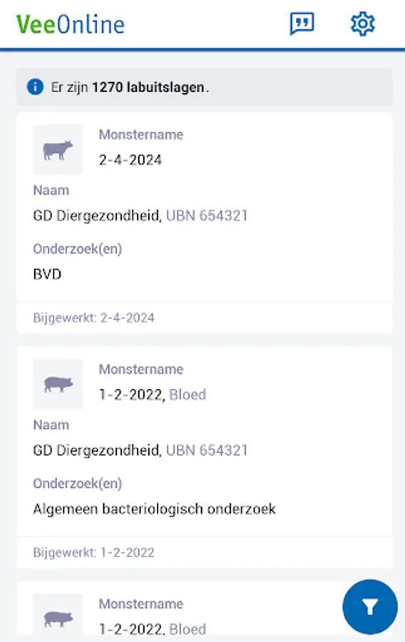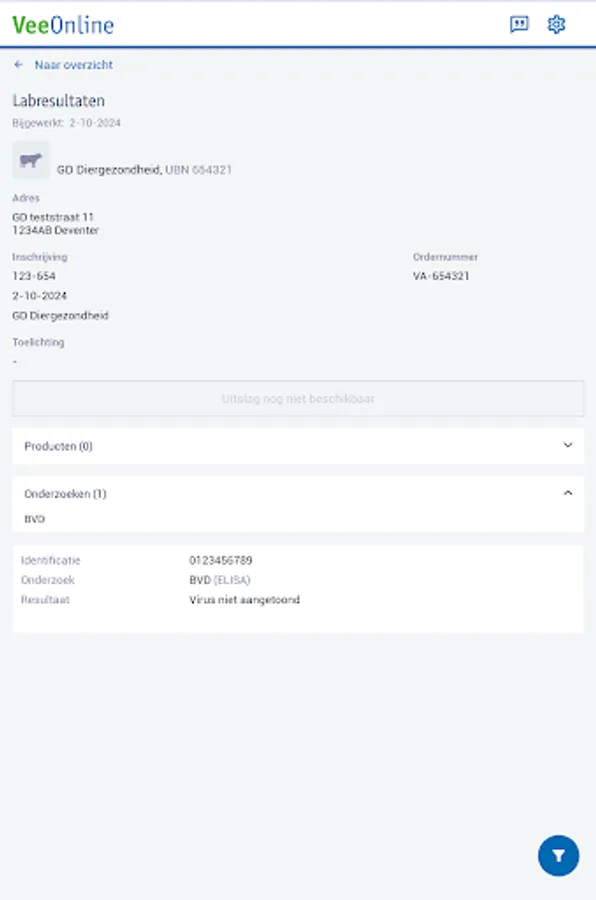 Consult your current lab results from GD, in addition to VeeOnline, anytime, anywhere via this app. The app contains a number of useful functionalities: you will receive a notification when new results of lab tests are received and you can view the results immediately. You can also easily filter your results by animal or research.