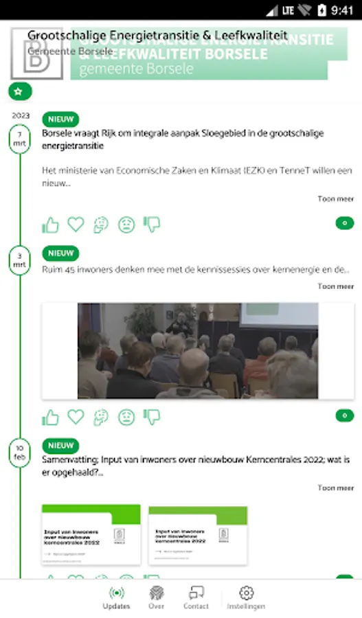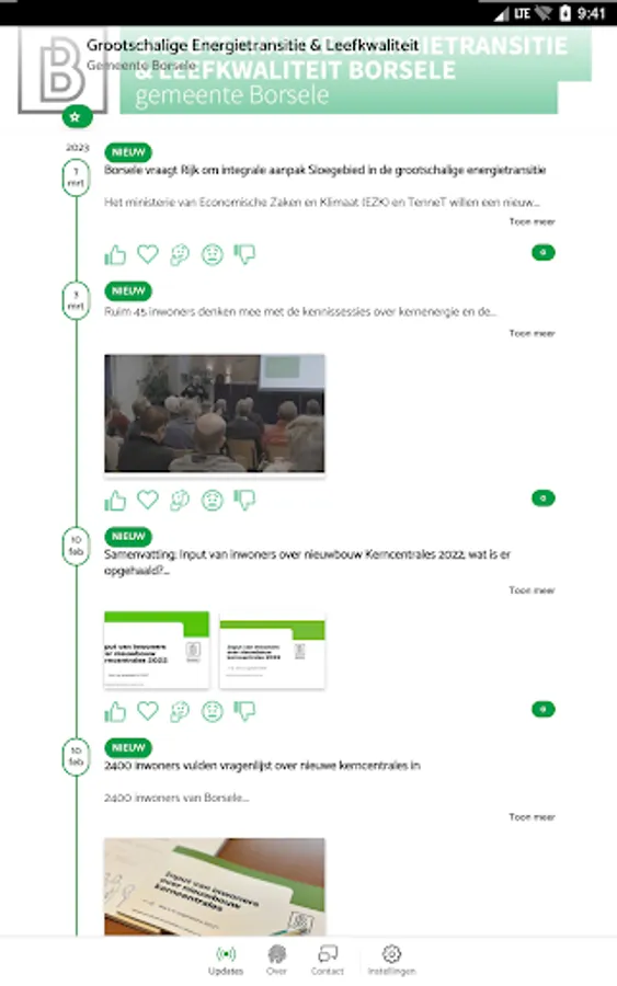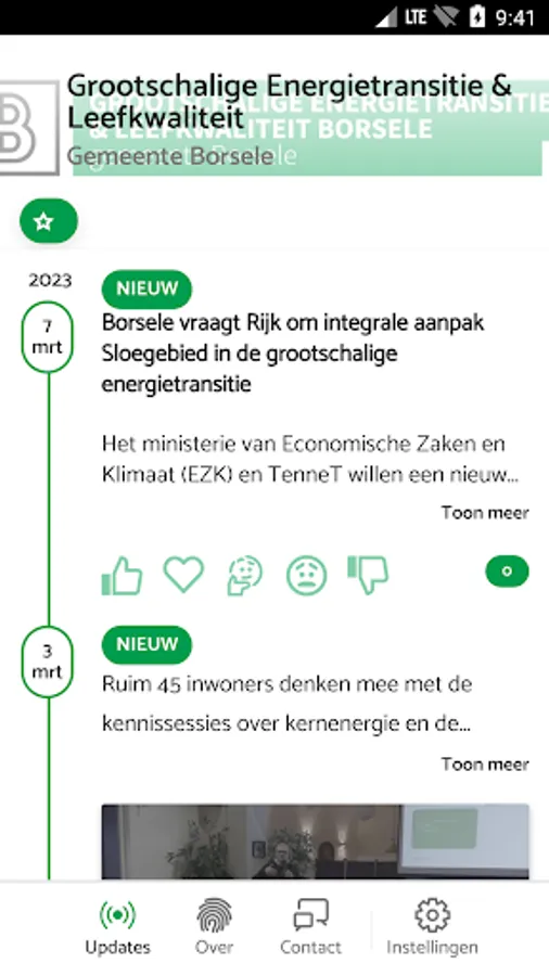 The municipality of Borsele also likes to keep interested parties informed via the app about its own activities related to these initiatives. This way you know when the national government takes formal steps in various processes, when and how you can have a say and how the municipality of Borsele represents the interests of its residents.
