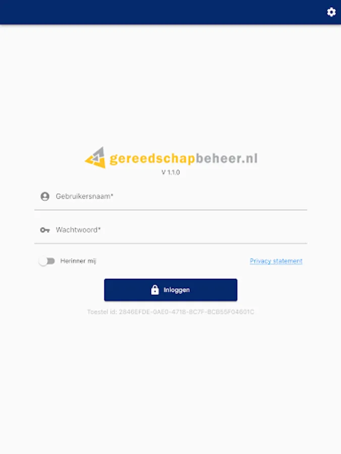 Note: An account of Gereedschapbeheer.nl is required to use this app. Go to http://www. Gereedschapbeheer.nl/demo/ to register a free demo account.