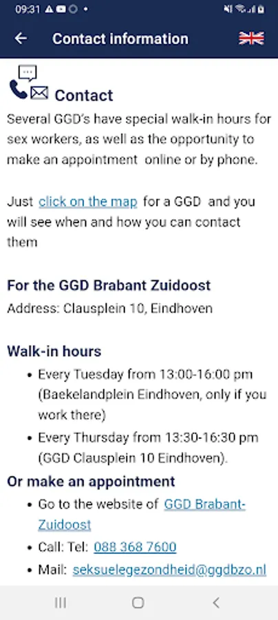 It's a free app. The app is intended to advise sex workers about the GGD (free STD testing and hepatitis B vaccinations), sexual health, contraception and working hygienically and safely.