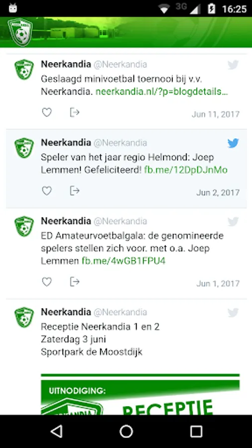 The Neerkandia app is specially designed for people who want to keep abreast of the latest news about football Neerkandia. These news messages posted on Twitter and accessible to everyone, but not be found by many people. By installing this app more people would be able to find news Neerkandia faster and easier.