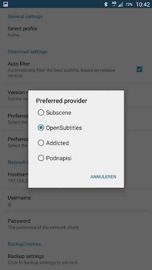 - SubDl, Addicted, OpenSubtitles and Podnapisi are supported. For OpenSubtitles, although it's not mandatory, please register an account at https://www.opensubtitles.org (if you don't already have one) and fill it in, in the settings.