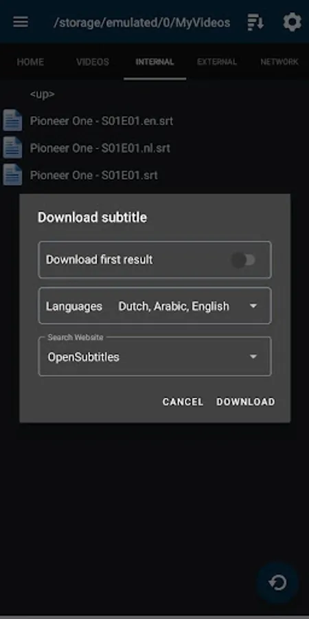 - Download subtitles for videos to your phones SD-card or a PC (network share/drive: Samba/SMB and SFTP/SSH are supported)