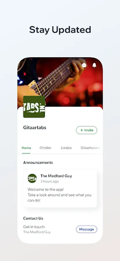 Via de Gitaartabs app kan je online gitaar leren spelen en dynamisch mee spelen met nationale en internationale populaire, makkelijke of gevorderde gitaarliedjes. De liedjes (ProTabs) en lessen zijn geschreven en uitgewerkt door ervaren (conservatorium) gitaristen.