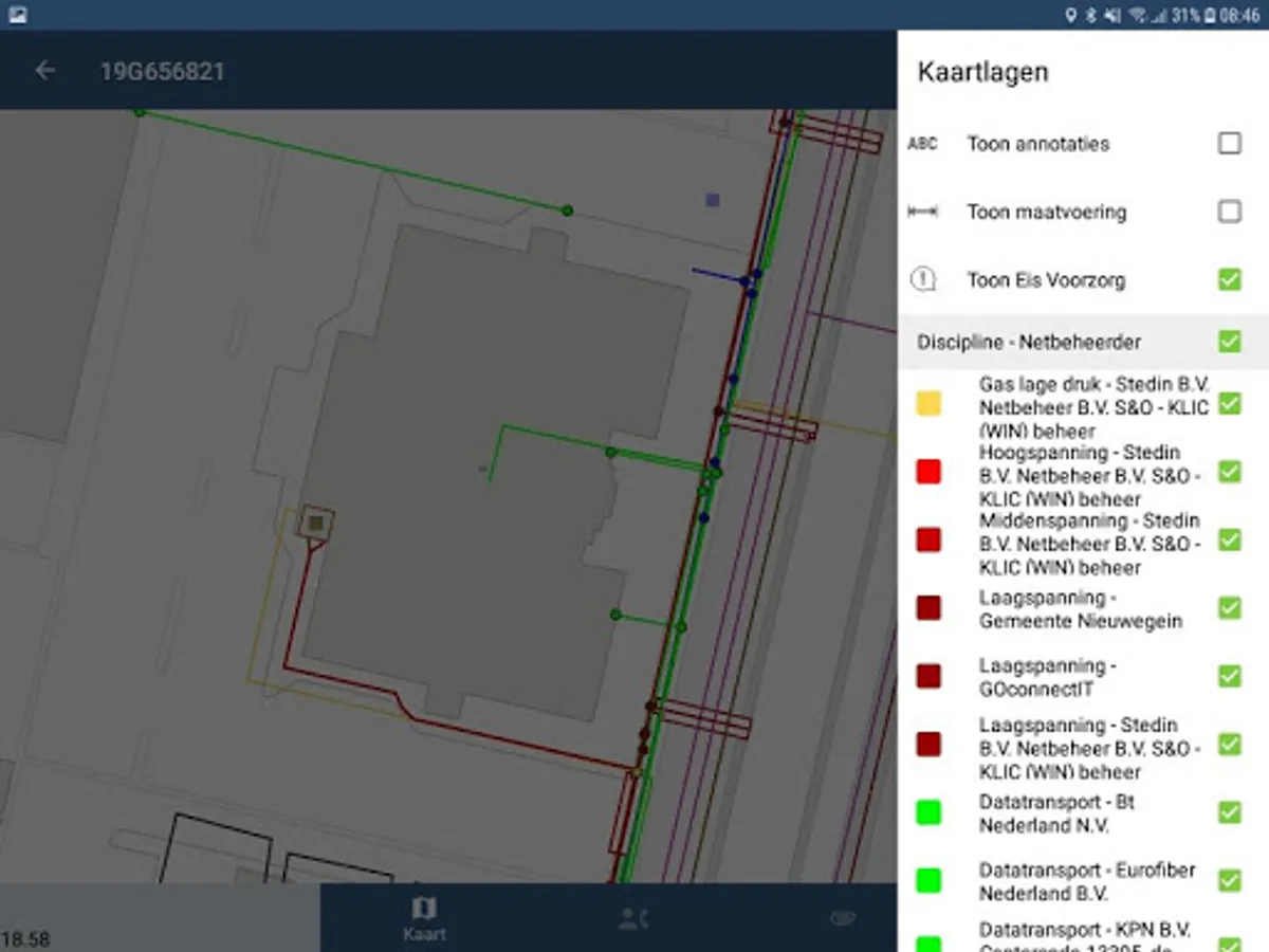 The App can Klic Klic reports (drawings and attachments) are in the field easily viewed. In the drawings, the user sees his GPS position and can determine where the cables and pipes according to the drawings belong to lie.