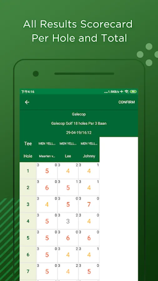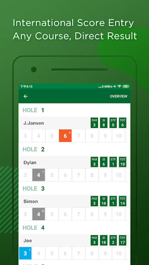 • Enter hole by hole score for 1-4 players (unlimited, free)
