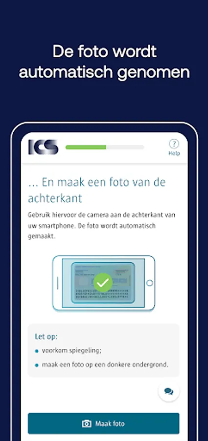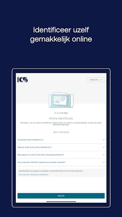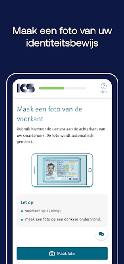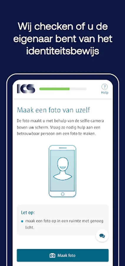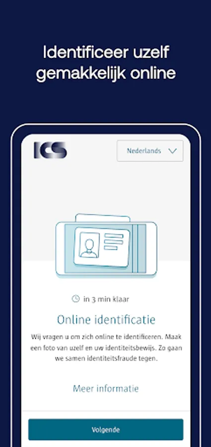 Simply take a photo of your ID and yourself with the ICS Identify app. Identification is required to apply for an ICS credit card.