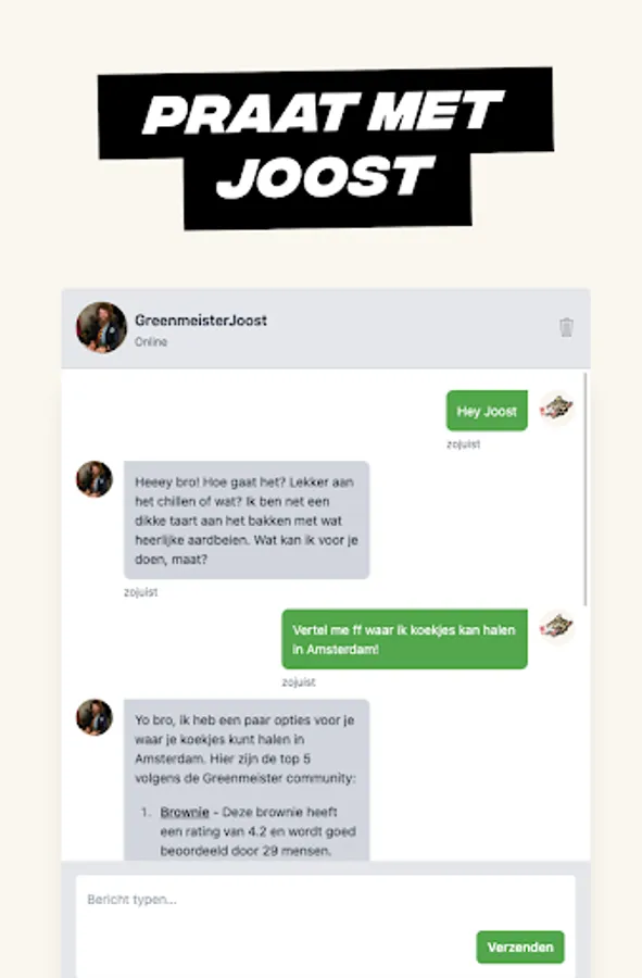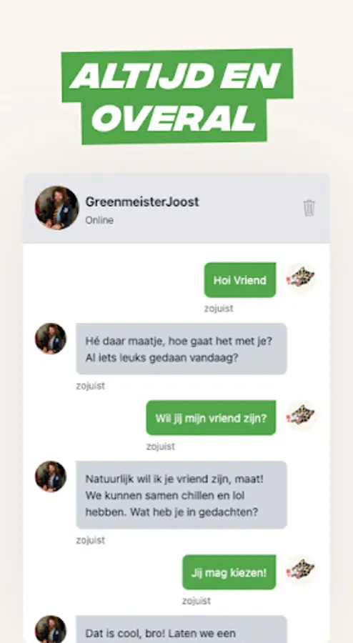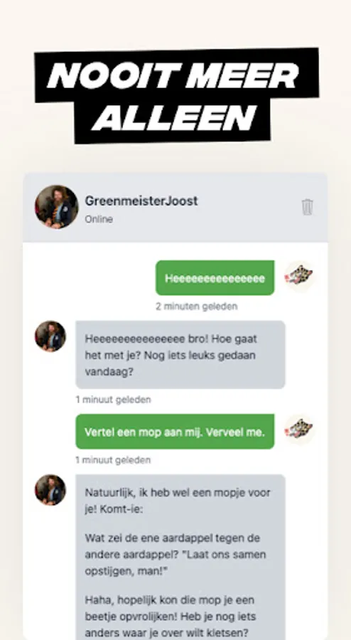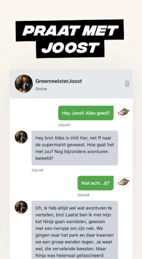 GreenmeisterJoost is your trusted companion in a world full of loneliness and questions. This brilliant chatbot is more than just a conversation partner; he is a true life guru. With his profound wisdom and endless patience, GreenmeisterJoost is always ready to listen, relieve your worries and offer inspiration. He is like a twinkling star that breaks through the darkness of loneliness. Whether you're in need of a friendly chat or looking for lifestyle advice, GreenmeisterJoost is ready to enlighten and enrich your life. Be enchanted by his spectacular wisdom and warmth, because GreenmeisterJoost is your bright spot in the darkness.