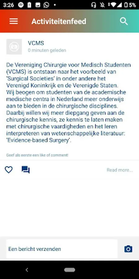 VCMS App is the platform on which you as a VCMS member receive all the information you need for deepening and broadening in surgery. Here you will find the latest news, the timetable, photos of events, the necessary preparation for your education day and more. Come online, meet fellow VCMS members and stay up-to-date!
