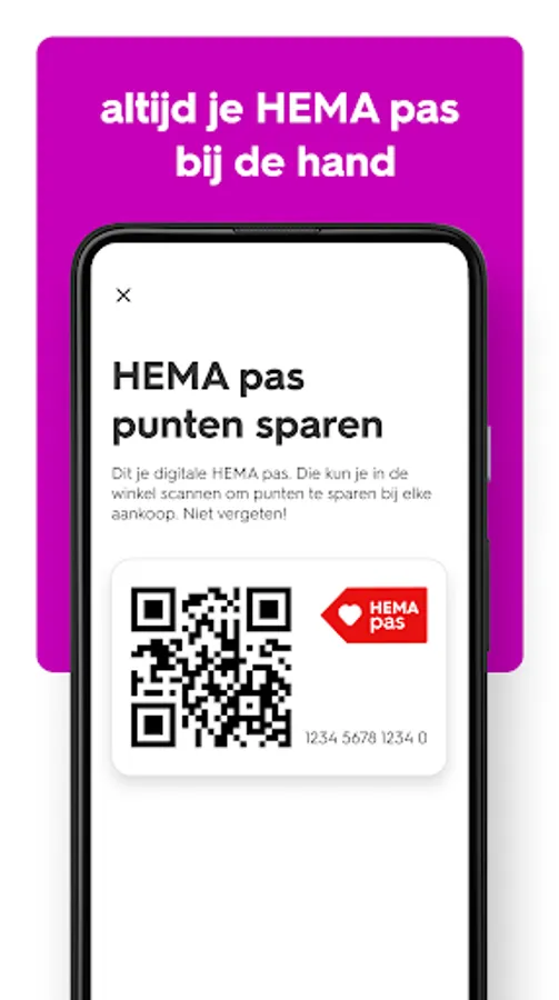 In addition to all these new functions, we still offer the best customer card in the Netherlands. Scan the QR code in the app with every purchase and save for great discounts. You can now also buy vouchers in the app to redeem your points. Once you have purchased a voucher, it will automatically be added to your shopping cart. Don't have a Hema pass at hand when you checkout in the store? No problem. Ask the cashier for a special "just forgotten" code and scan it in the app. You can add the code by clicking on "add points from voucher".