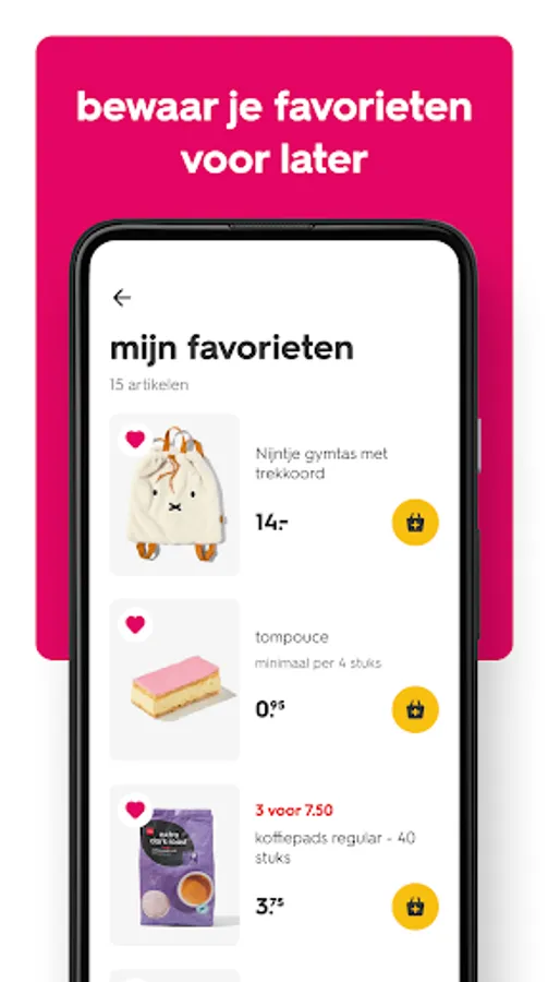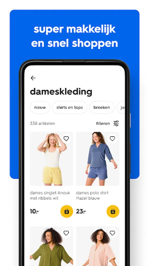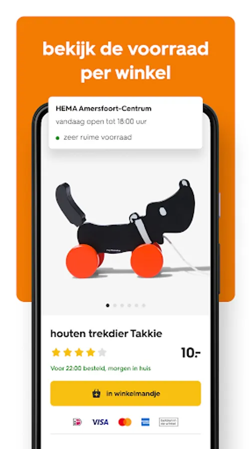 The design of our updated HEMA app is simple and intuitive, so you can easily find products and add them to your shopping cart. If a product is sold out online, you can easily search for a HEMA store nearby where the product is still in stock.