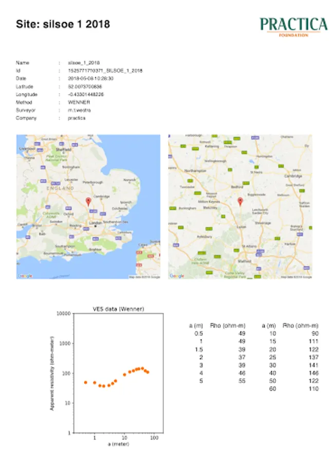 After submission of geophysics data, the user receives a pdf report with the data, and with computed models for 3, 4, and 5 layers and an Occam model. The raw data in Excel format is also provided.