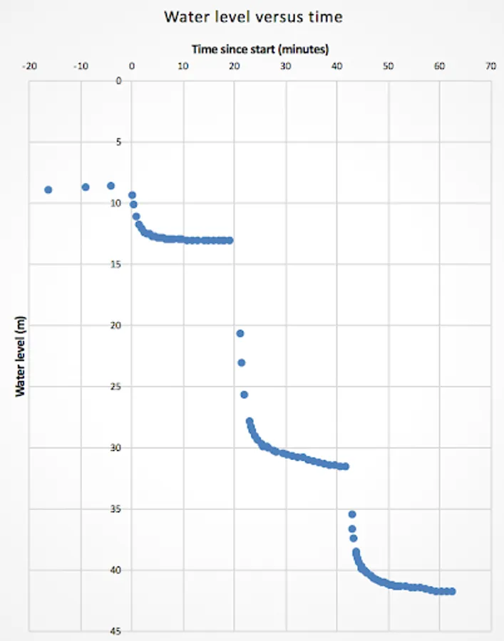 Pumping tests -- Capture pumping test data such as level, discharge and water quality parameters, plus information on location, borehole reference, etc.. After submission, the user receives an Excel file with all the data, including drawdown graphs.