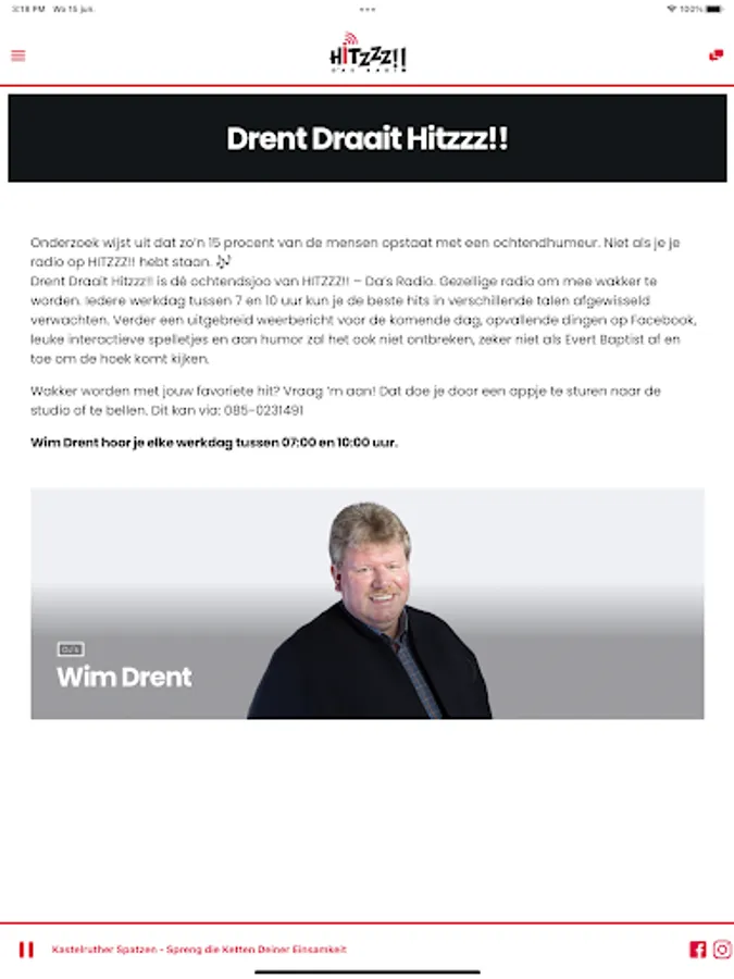 HITZZZZ!! is a fun radio station that plays music with a wink for a very broad, active, target group from 10+ to 100 years old, and can be listened to via different FM frequencies.