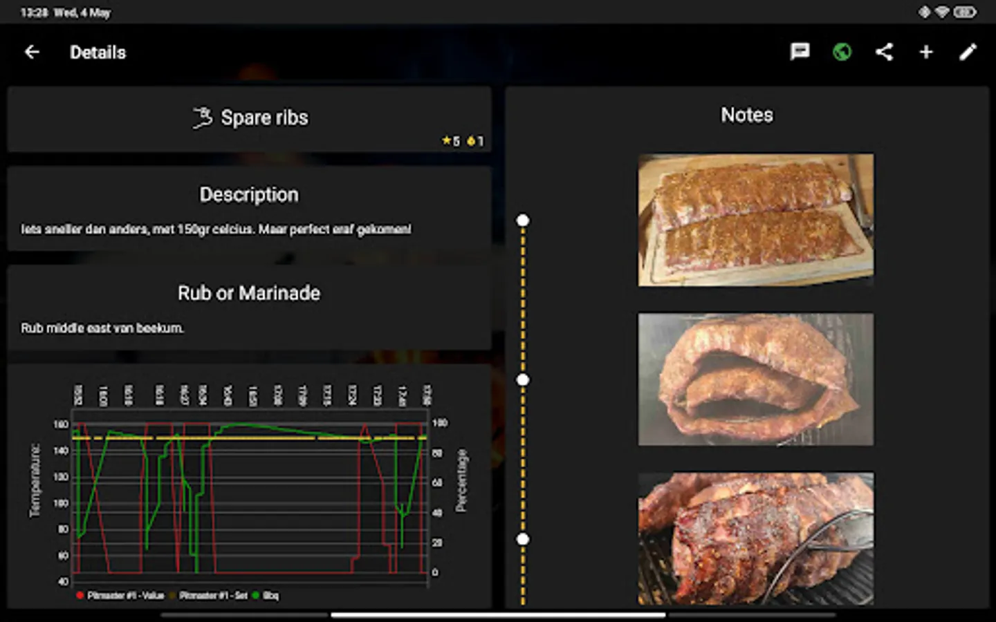 SoGrill allows your to record your full BBQ session and share it with friends. Take notes and save images of that awesome piece of meat. And look at your bbq session as one big timeline.