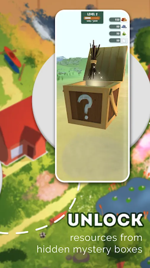 During the expedition you'll be roaming around the resort searching for hidden mystery boxes. Use the map to pinpoint their exact locations and figure out the fastest route to get there. Stumbled upon a mystery box? Tap it in order to play the minigame and unlock resources for your treehouse.