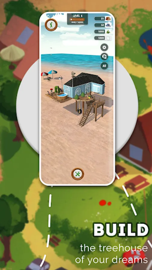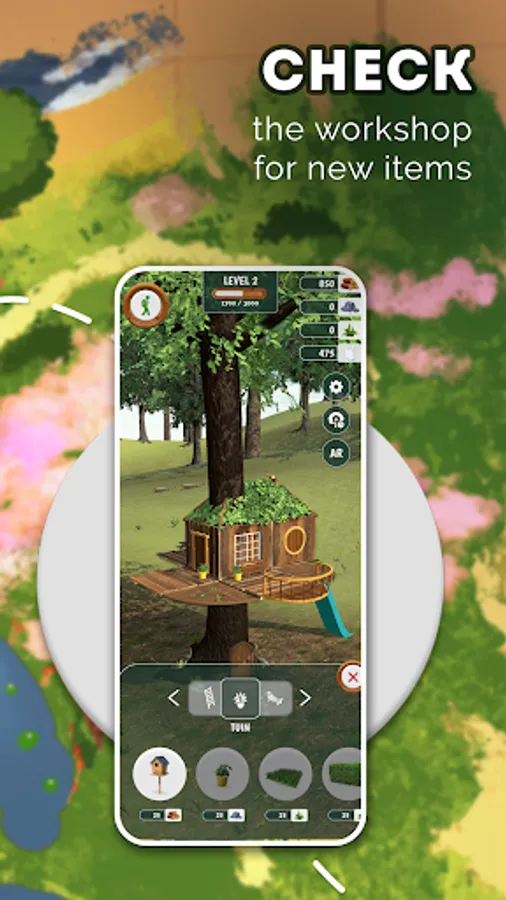 In the workshop you can use your gathered resources to expand your treehouse with cool new items. The more you build, the more new parts you'll unlock. If you've completed level 5 there is an extra reward waiting for you. Let your imagination run free and build the greatest treehouse of the entire resort!