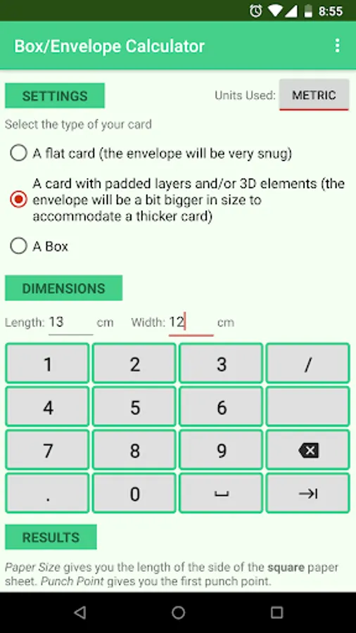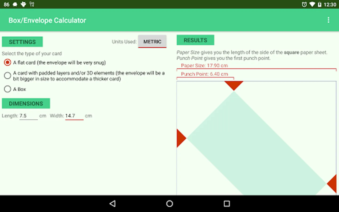 A paper size / punch point calculator for DIY boxes and envelopes of any size to be used with punching boards like the We R Memory Keepers Envelope Punch Board or the Joy!Crafts punch board - card & envelope maker.