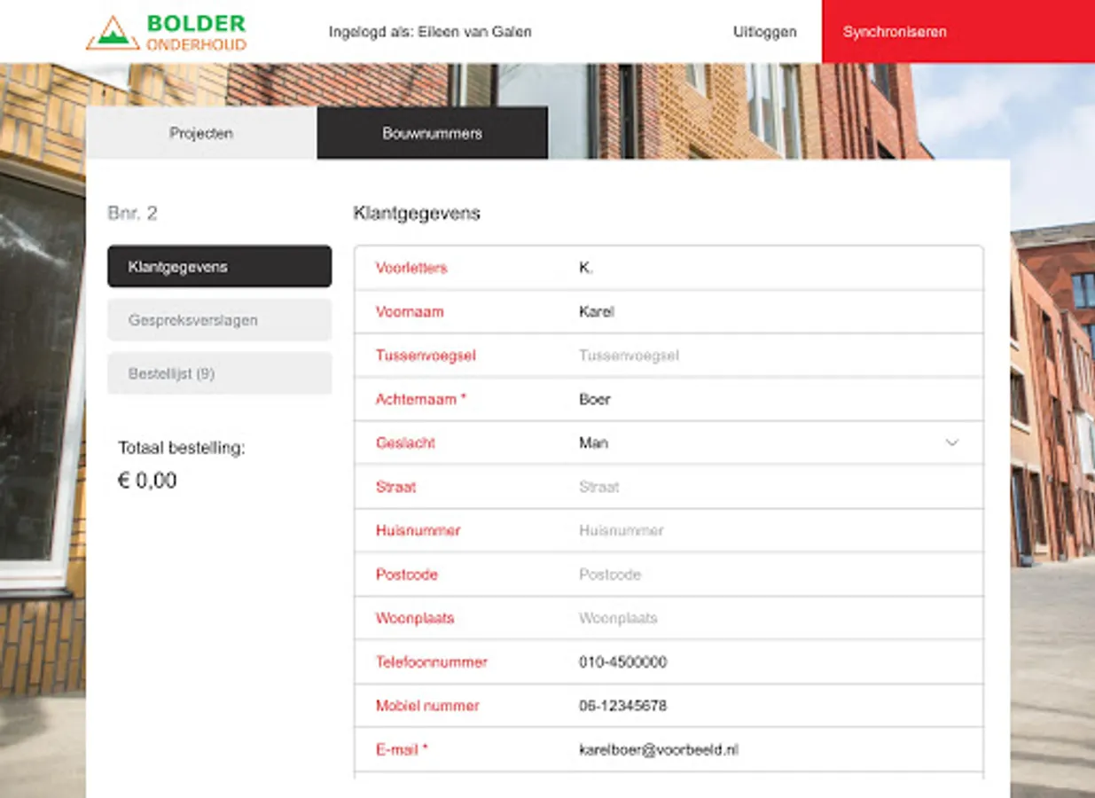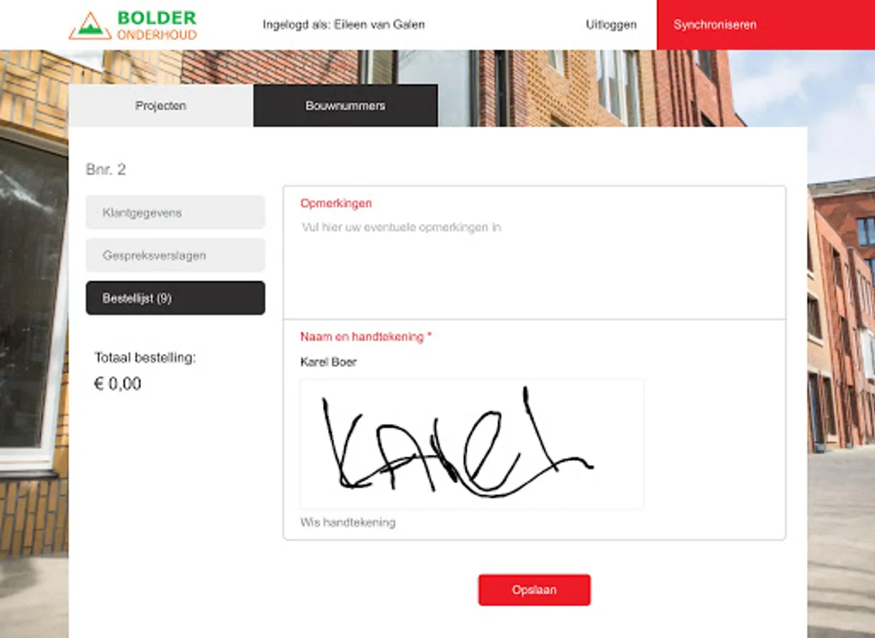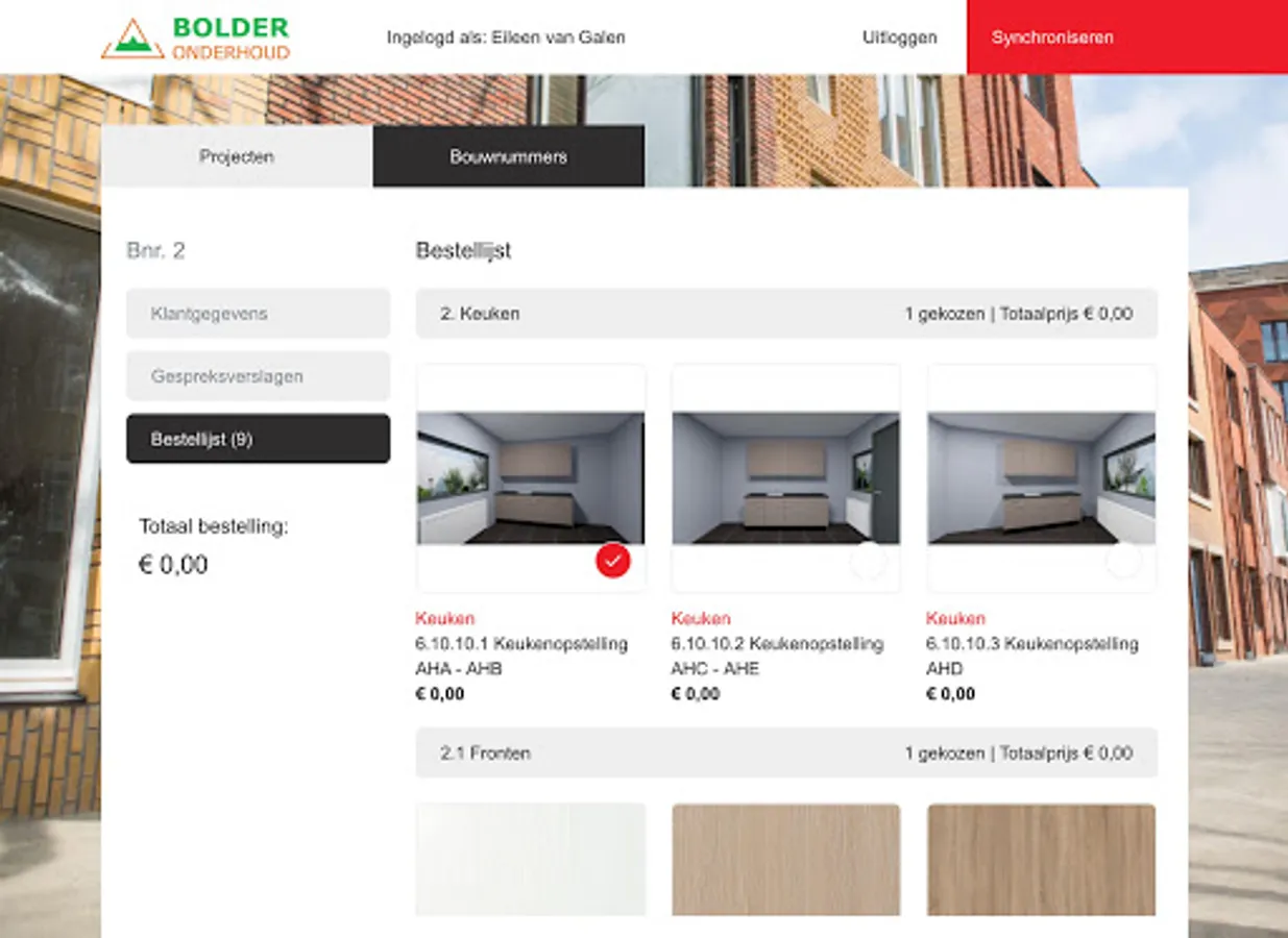 Another part of the app is that you can go through the residents' choices of buyers / tenants via the tablet and choose from the order list. The selected options are created as an order and entered customer data and call reports are immediately saved in the homeDNA environment.