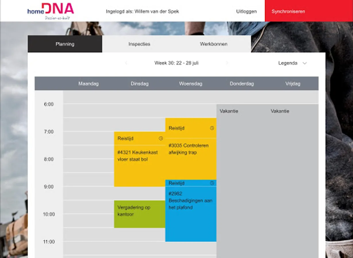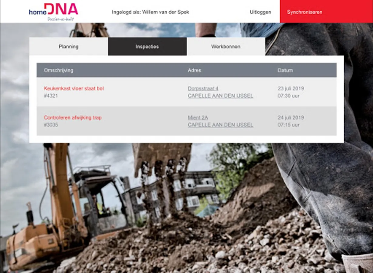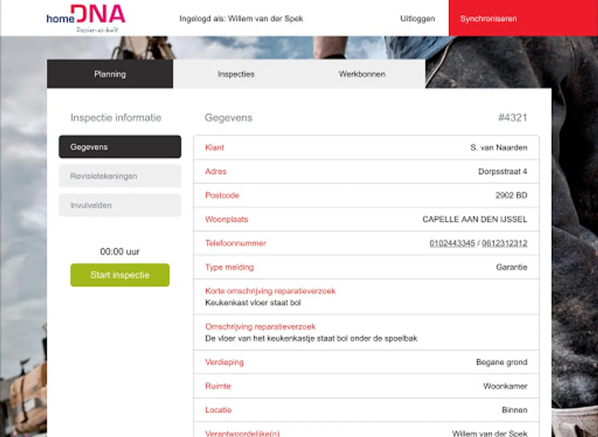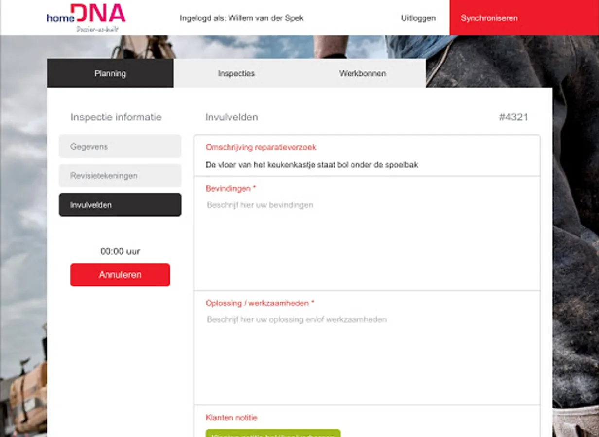 The Service app is a digital app with which the service technician has all information available for the service visits. For example, he has an overview of his agreements and all information can be entered directly with the work vouchers already prepared. The work orders can be completed on site with material, time and images. The Service App can also be used to perform inspections. This information is further processed in the Service & Maintenance module. Data from the app is stored directly in the homeDNA environment.