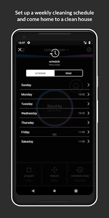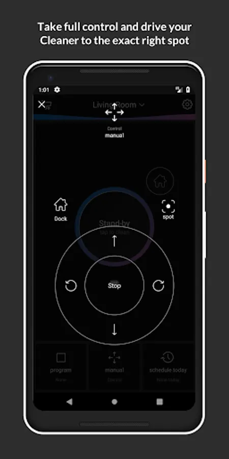 The HomeWizard Cleaner app gives you full control over cleaning your house. All you have to do is lift one finger.