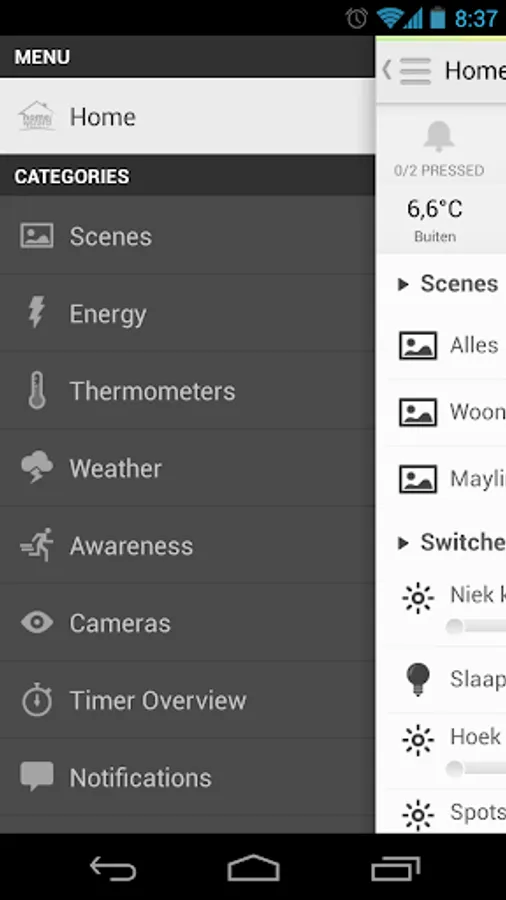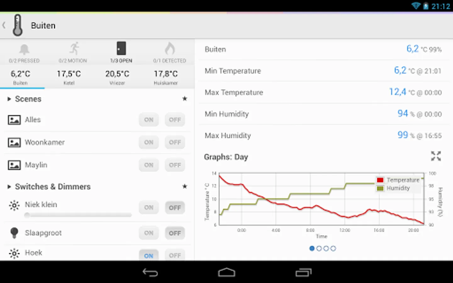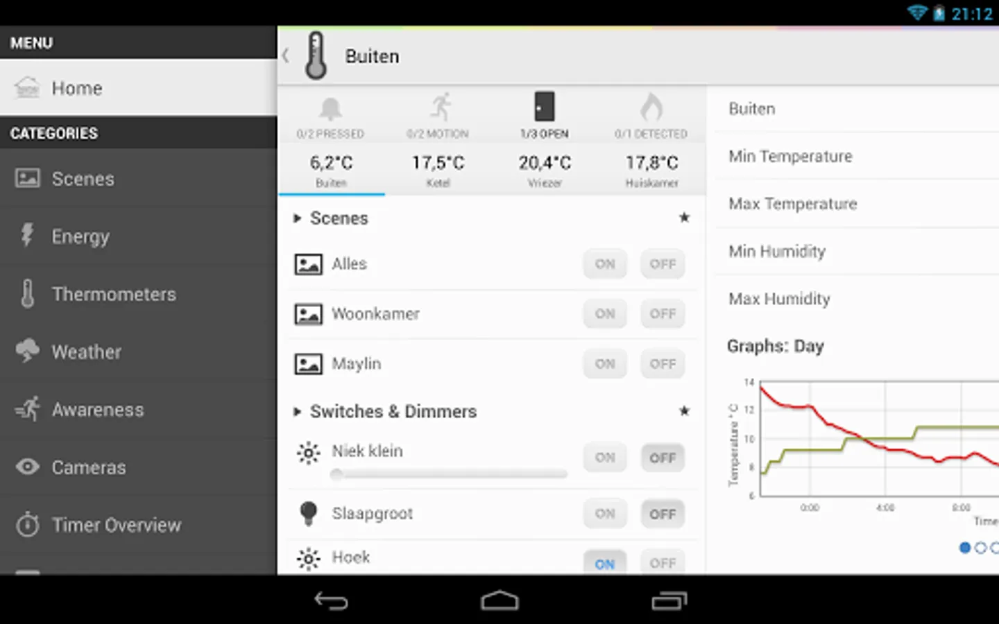 The HomeWizard connects your Android device to existing wireless systems from various manufacturers such as KlikAanKlikUit, Cresta, TFA, Somfy and Wattcher. The HomeWizard makes it possible to control lights and other devices using your smartphone or tablet. It’s also equipped to send push notifications when your doorbell is pressed and is even capable to receive data from wireless weather station equipment or real-time energy measuring devices. The HomeWizard app can also be used to control your curtains, blinds or garage doors. The app connects with your own WiFi network for internet access and automatic firmware updates. With our HomeWizard Online service you can easily connect to your HomeWizard wherever you are, whenever you need to (www.homewizard.nl/homewizardonline).