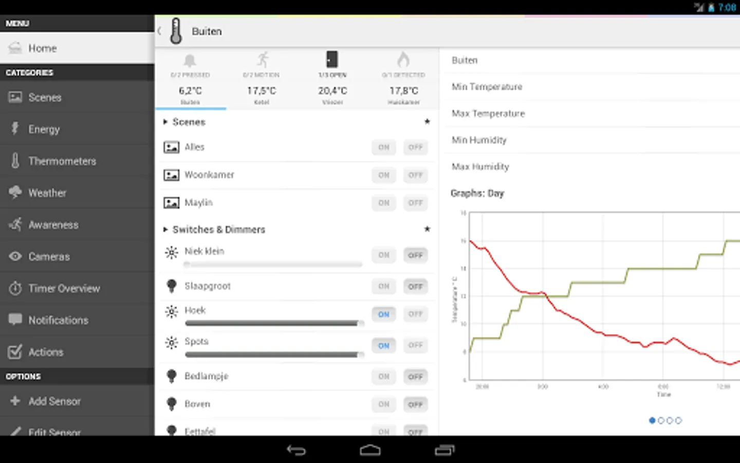 - Add IP-camera's to view a live feed from your house, anywhere you are, with the possibility to control your lights/house at the same time.