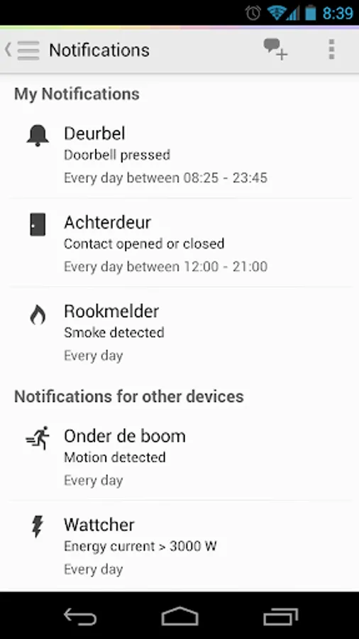 - With 'Actions', you can control your lights on the basis of various conditions such as time and sensor activity: make sure all your lights turn on when a motion detector is activated, but only between 24.00 and 07.00 and turn them off again after 5 minutes!