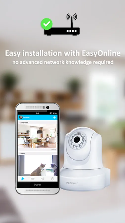 The cameras app guides you through the entire configuration of the camera, so you have it set up in no-time. And afterwards, because of our proprietary EasyOnline technology, you will be able to enjoy the live feed and other functionality from anywhere you are, completely hassle-free.