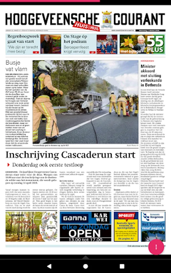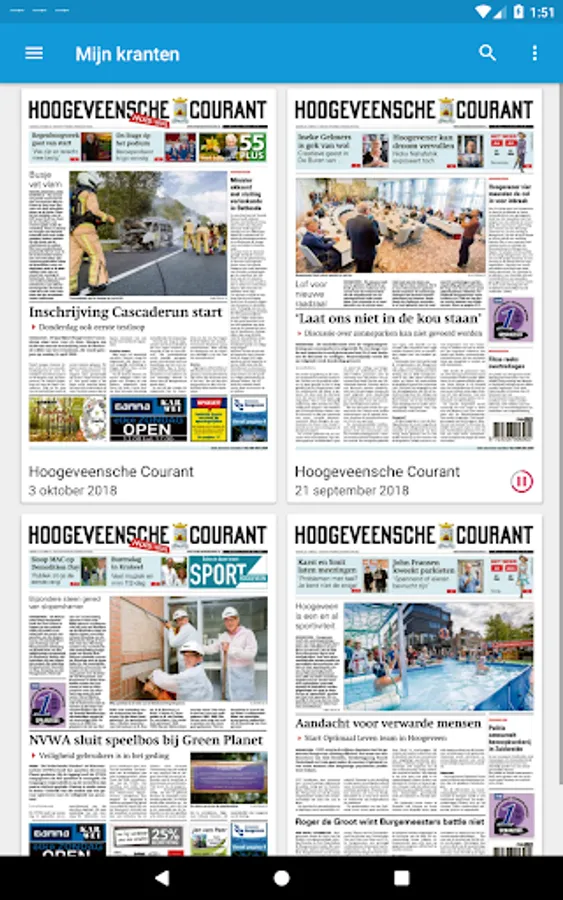 This app gives you access to the digital edition of the Hoogeveensche Courant. The digital newspaper is equal to the paper newspaper, including all attachments. Simply browse through the latest newspaper or read older newspapers. You can find both the door-to-door edition and the subscriber edition in this app.